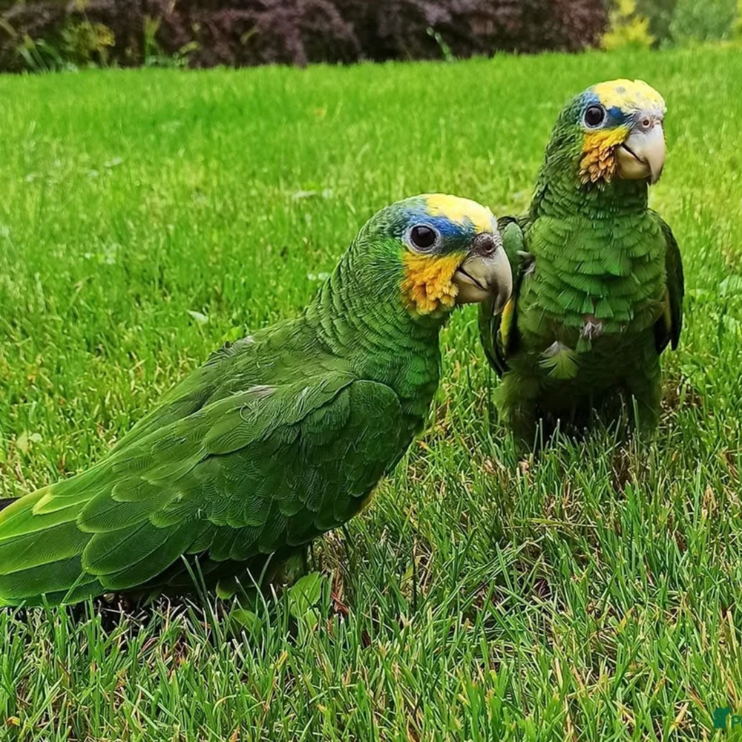 They have been socialized well and they already come to us when we call them, they will step up on hand, they love head scratches and cuddles. They eat fruits, vegetables, parrot mix seeds and pellets