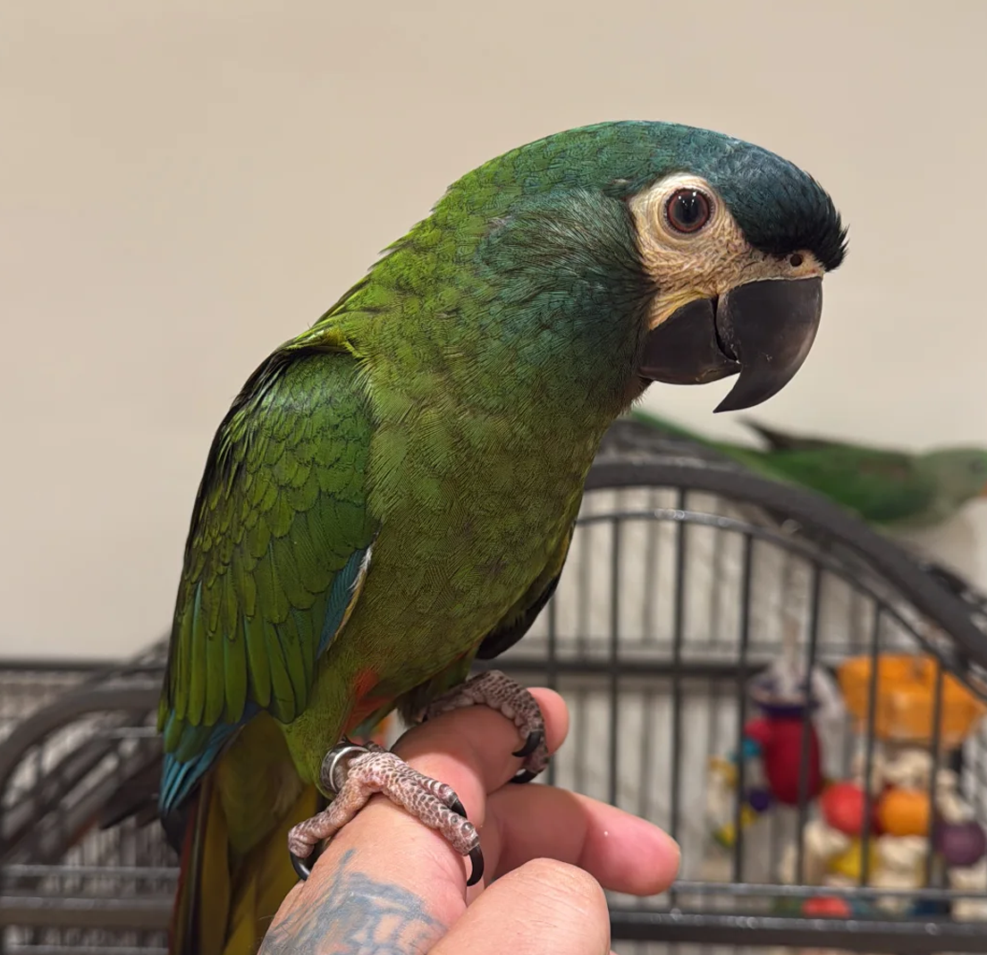 Beautiful, friendly, and playful female Blue-Winged Macaw, only 6 months old. She is very social, enjoys interaction, and is already showing a wonderful personality. Comes with official certificate. Perfect companion for anyone looking for a smart and affectionate parrot.
